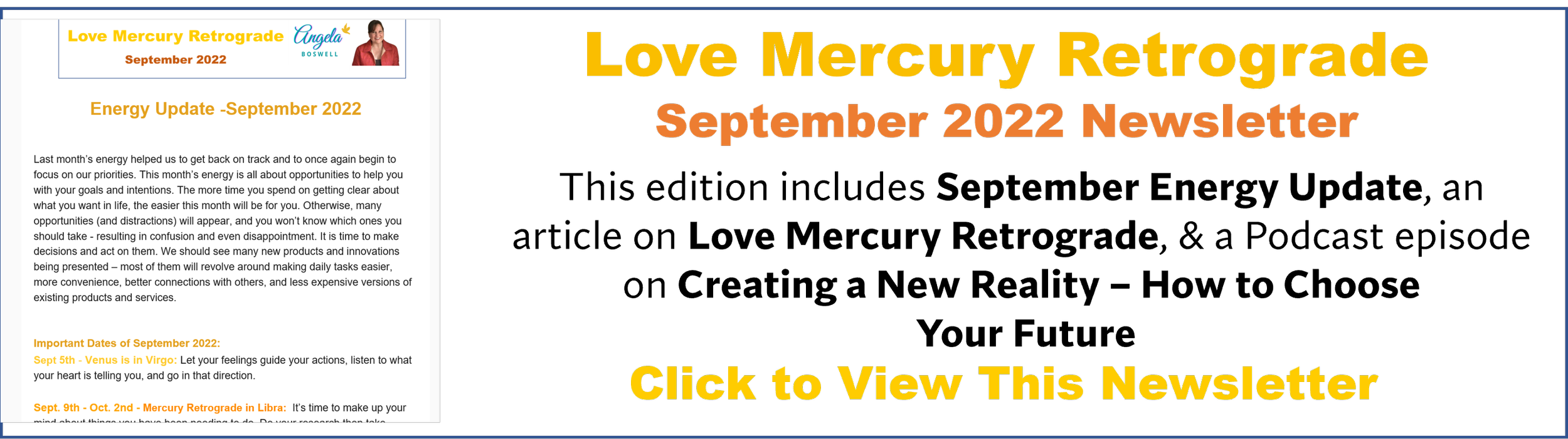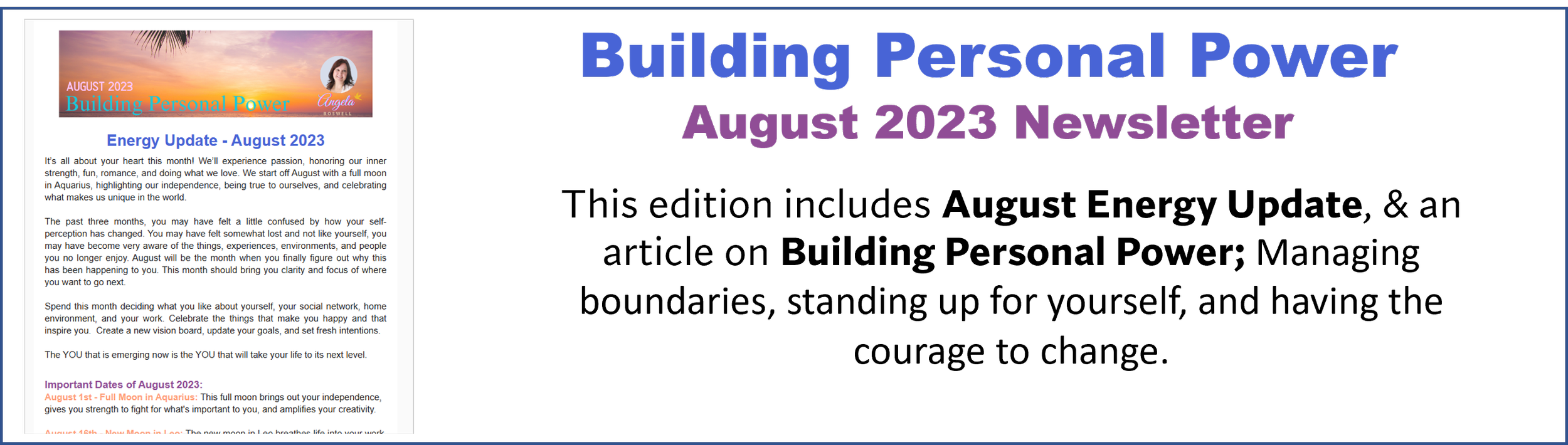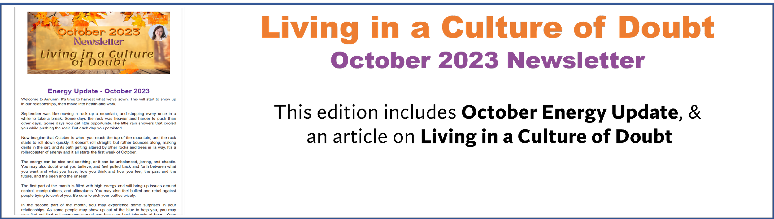 My monthly newsletter highlights a current Energy Update, Reminders for the month including astrology and world energy, an article about Spiritual topics, a Do the Work section for you to find your answers, and links to interesting and relevant tools and resources!